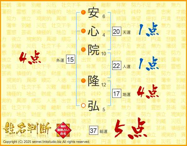 安心院隆弘さんの総運は37画の5点!