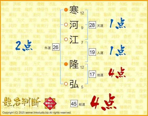 寒(12画)河(9画)江(7画) 隆(12画)弘(5画)