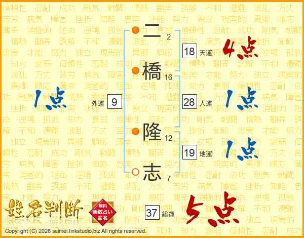 二橋隆志さんの総運は37画の5点!