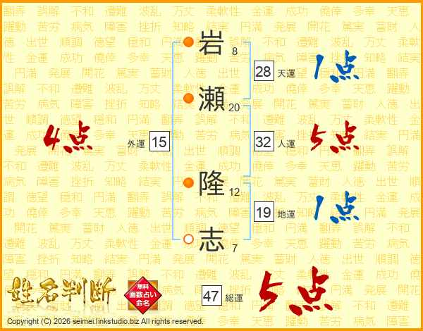 岩瀬隆志さんの総運は47画の5点!