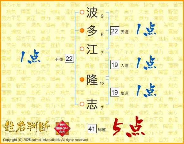 波(9画)多(6画)江(7画) 隆(12画)志(7画)