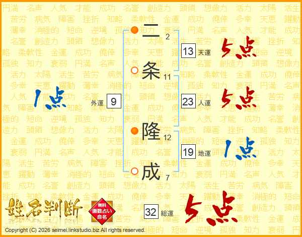 二条隆成さんの総運は32画の5点!
