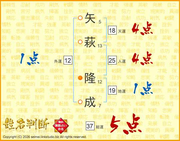 矢(5画)萩(13画) 隆(12画)成(7画)