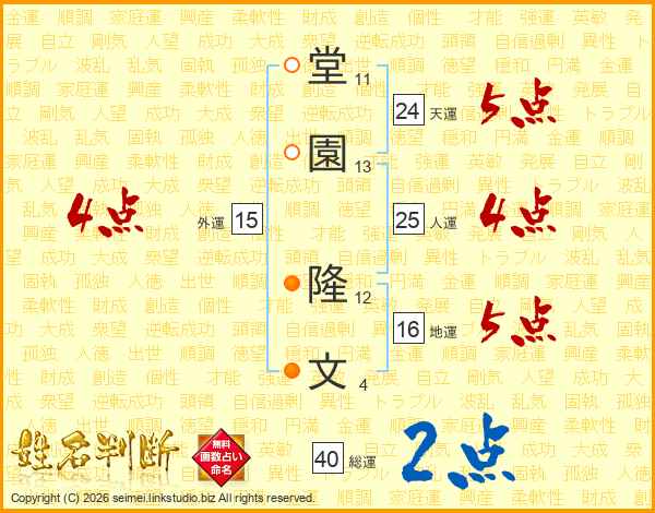 金運 順調 家庭運 興産 柔軟性 財成 創造