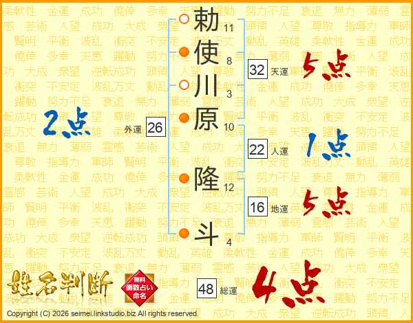 勅使川原隆斗さんの総運は48画の4点!