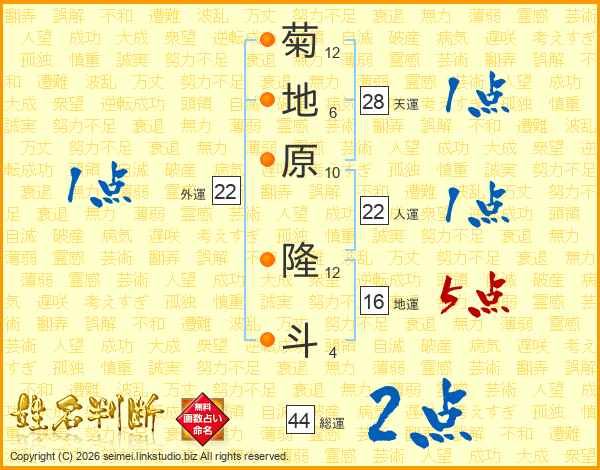 菊(12画)地(6画)原(10画) 隆(12画)斗(4画)