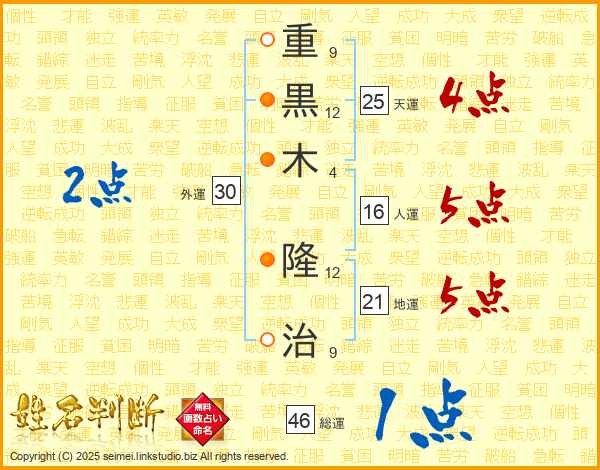 重黒木隆治さんの天運は25画の4点!
