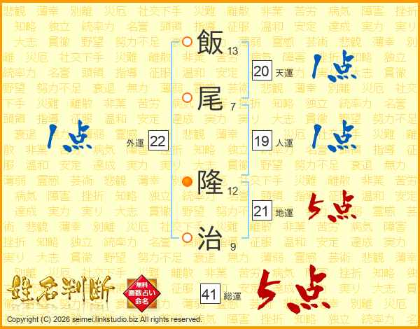 飯尾隆治さんの総運は41画の5点!