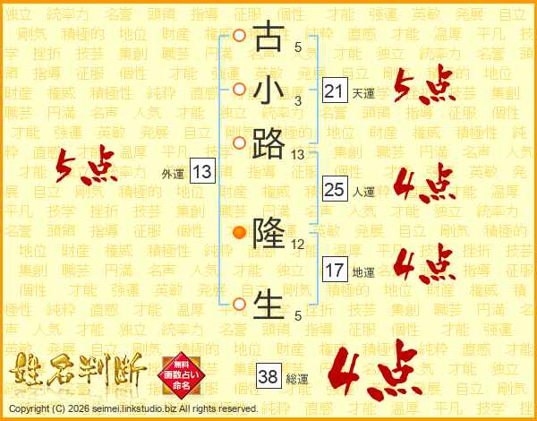 古小路隆生さんの総運は38画の4点!