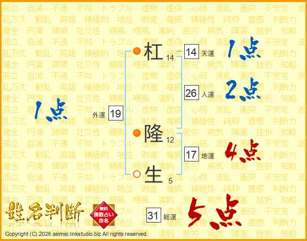 杠隆生さんの総運は31画の5点!