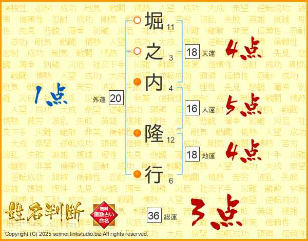 堀(11画)之(3画)内(4画) 隆(12画)行(6画)
