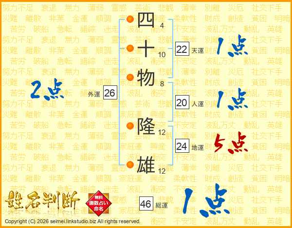 四十物隆雄さんの総運は46画の1点!