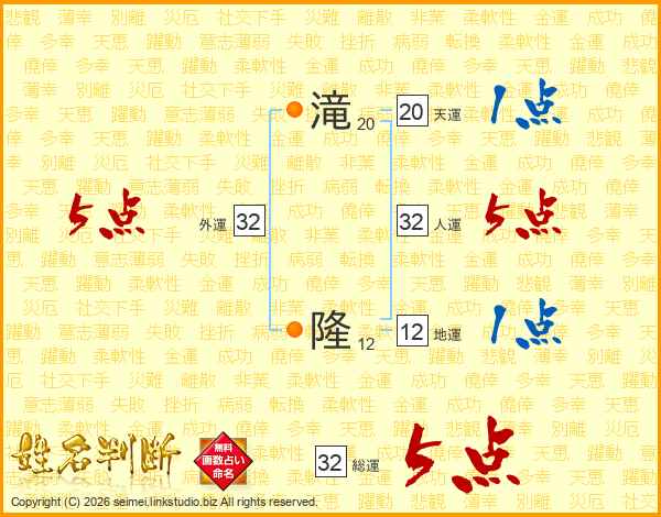 滝隆さんの総運は32画の5点