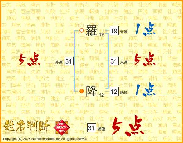 羅隆さんの総運は31画の5点!
