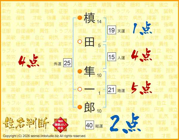 槙田隼一郎さんの総運は40画の2点!