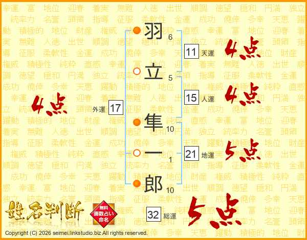 羽立隼一郎さんの総運は32画の5点!