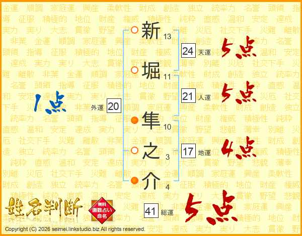 新堀隼之介さんの総運は41画の5点!