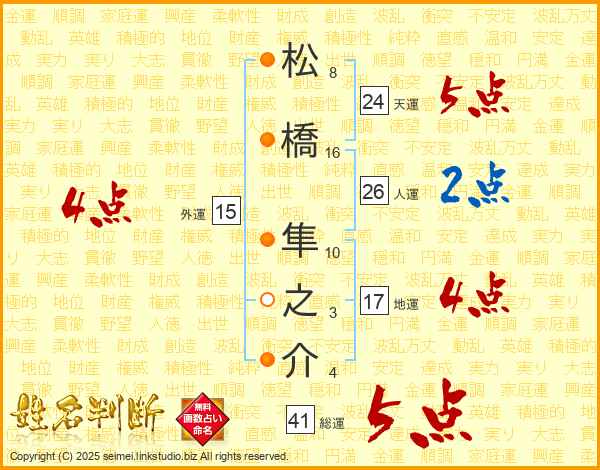松(8画)橋(16画) 隼(10画)之(3画)介(4画)
