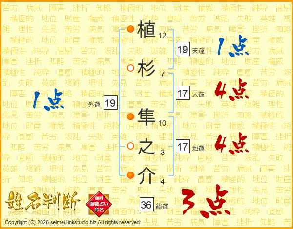 植杉隼之介さんの人運は17画の4点!