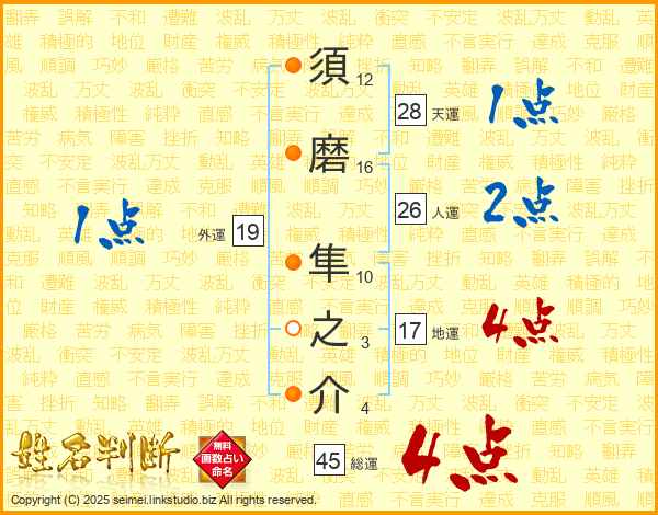 須(12画)磨(16画) 隼(10画)之(3画)介(4画)