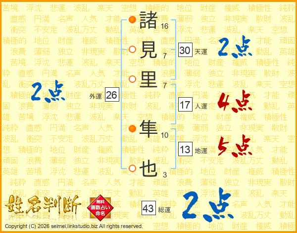 諸(16画)見(7画)里(7画) 隼(10画)也(3画)