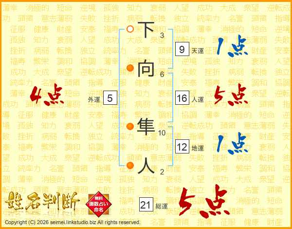 下向隼人さんの総運は21画の5点!
