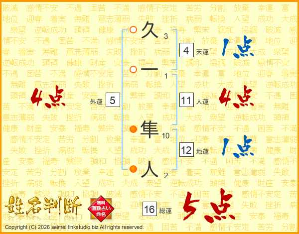 久一隼人さんの総運は16画の5点!