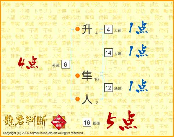 升隼人さんの総運は16画の5点!
