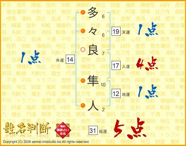 多々良隼人さんの総運は31画の5点!