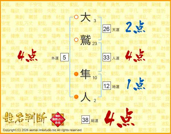 大鷲隼人さんの総運は38画の4点!