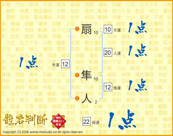 扇隼人さんの人運は20画の1点!