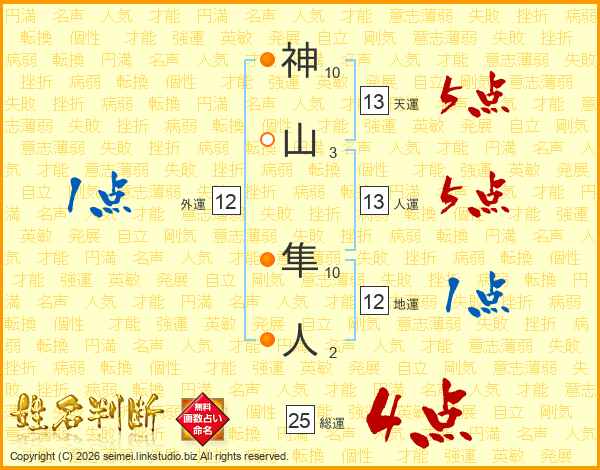 神山隼人さんの総運は25画の4点!