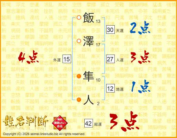 飯澤隼人さんの総運は42画の3点!