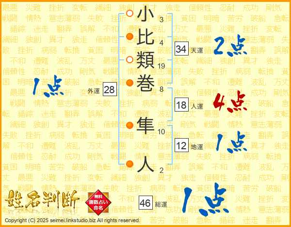 小(3画)比(4画)類(19画)巻(8画)  隼(10画)人(2画)