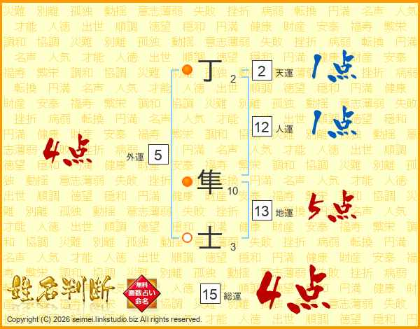 丁隼士さんの総運は15画の4点!