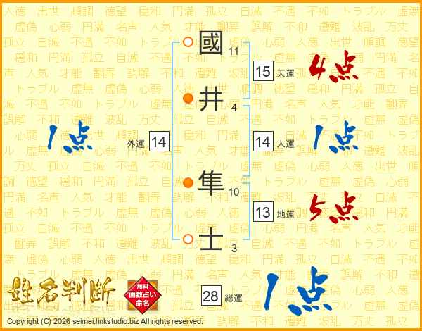 國井隼士さんの総運は28画の1点!