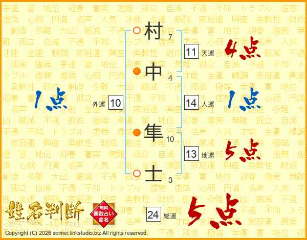 村中隼士さんの総運は24画の5点!