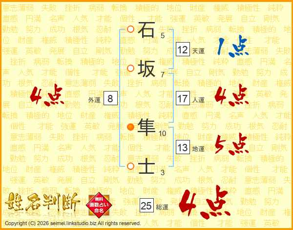石坂隼士さんの総運は25画の4点!