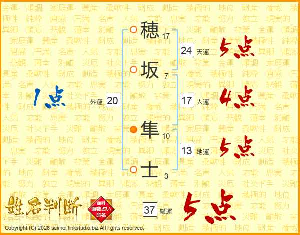 穂(17画)坂(7画) 隼(10画)士(3画)