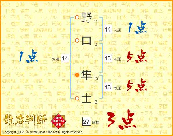 野口隼士さんの人運は13画の5点!