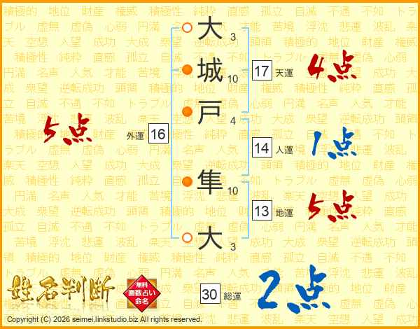 大城戸隼大さんの総運は30画の2点!