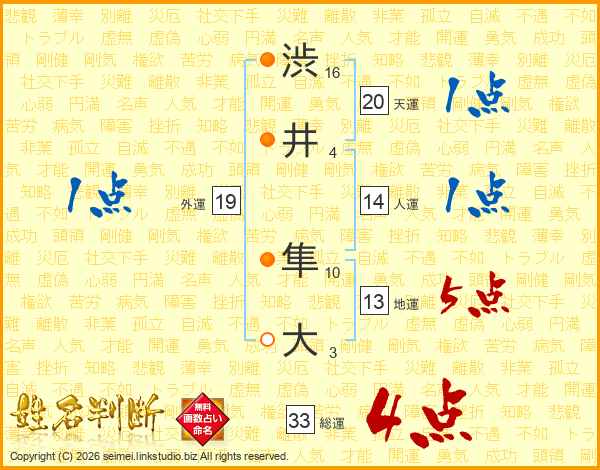 渋井隼大さんの総運は33画の4点!