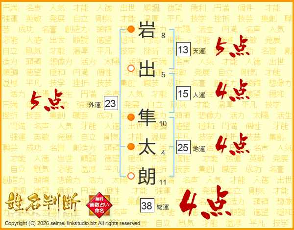 岩出隼太朗さんの総運は38画の4点!
