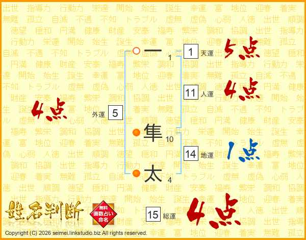 一隼太さんの総運は15画の4点!