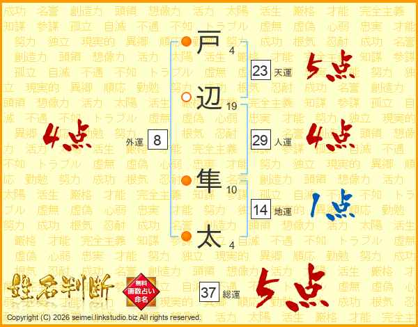 戸(4画)辺(19画) 隼(10画)太(4画)