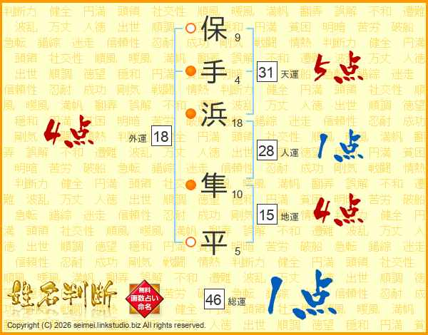 保手浜隼平さんの総運は46画の1点!