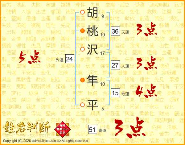 胡桃沢隼平さんの人運は27画の3点!
