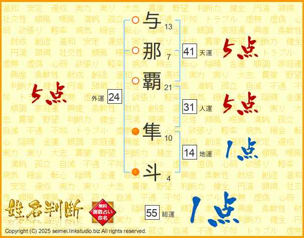 与(13画)那(7画)覇(21画) 隼(10画)斗(4画)