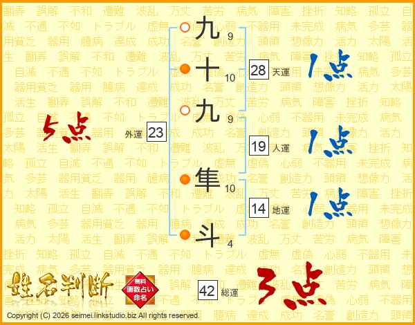 九十九隼斗さんの総運は42画の3点!