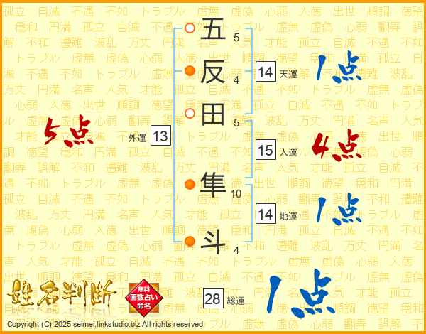 五反田隼斗さんの外運は13画の5点!